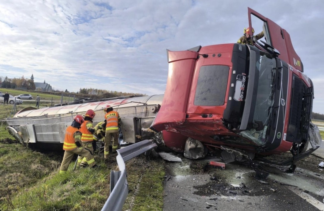 Na autostradzie A4, tuż za Tarnowem w kierunku Rzeszowa, doszło do poważnie wyglądającej kolizji z udziałem cysterny. Do zdarzenia doszło w rejonie miejscowości Zaczarnie, gdzie ciężarówka przewożąca substancje wykorzystywane do produkcji farb uderzyła w bariery ochronne i przewróciła się na bok.