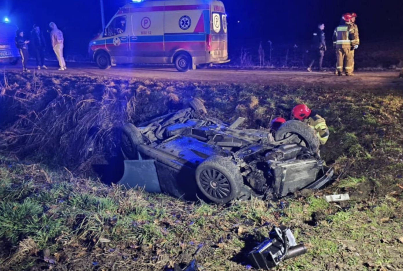 Nocny dramat na drodze. Samochód dachował w regionie, pięciu młodych mężczyzn trafiło do szpitala