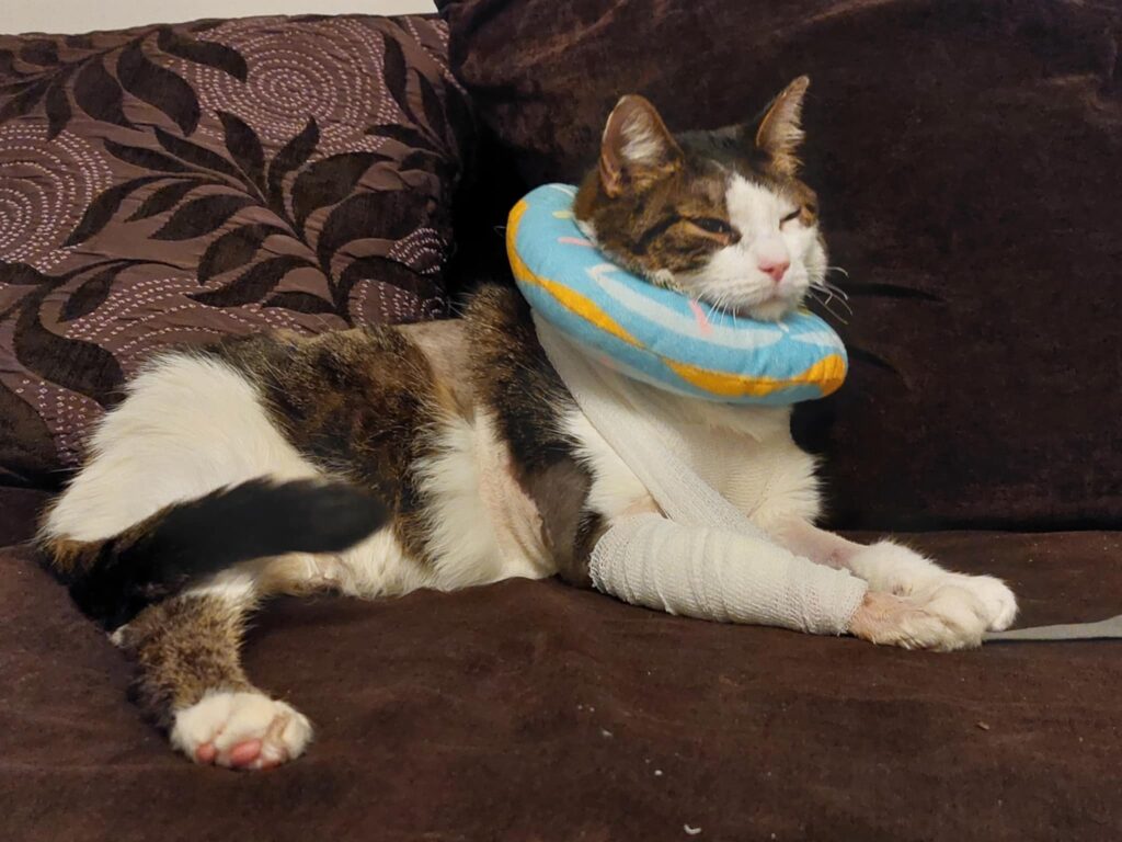Obecnie kot znajduje się w nowym, bezpiecznym miejscu. Trafił do osoby, która zapewnia mu spokojne życie i opiekę, jakiej wcześniej zabrakło.